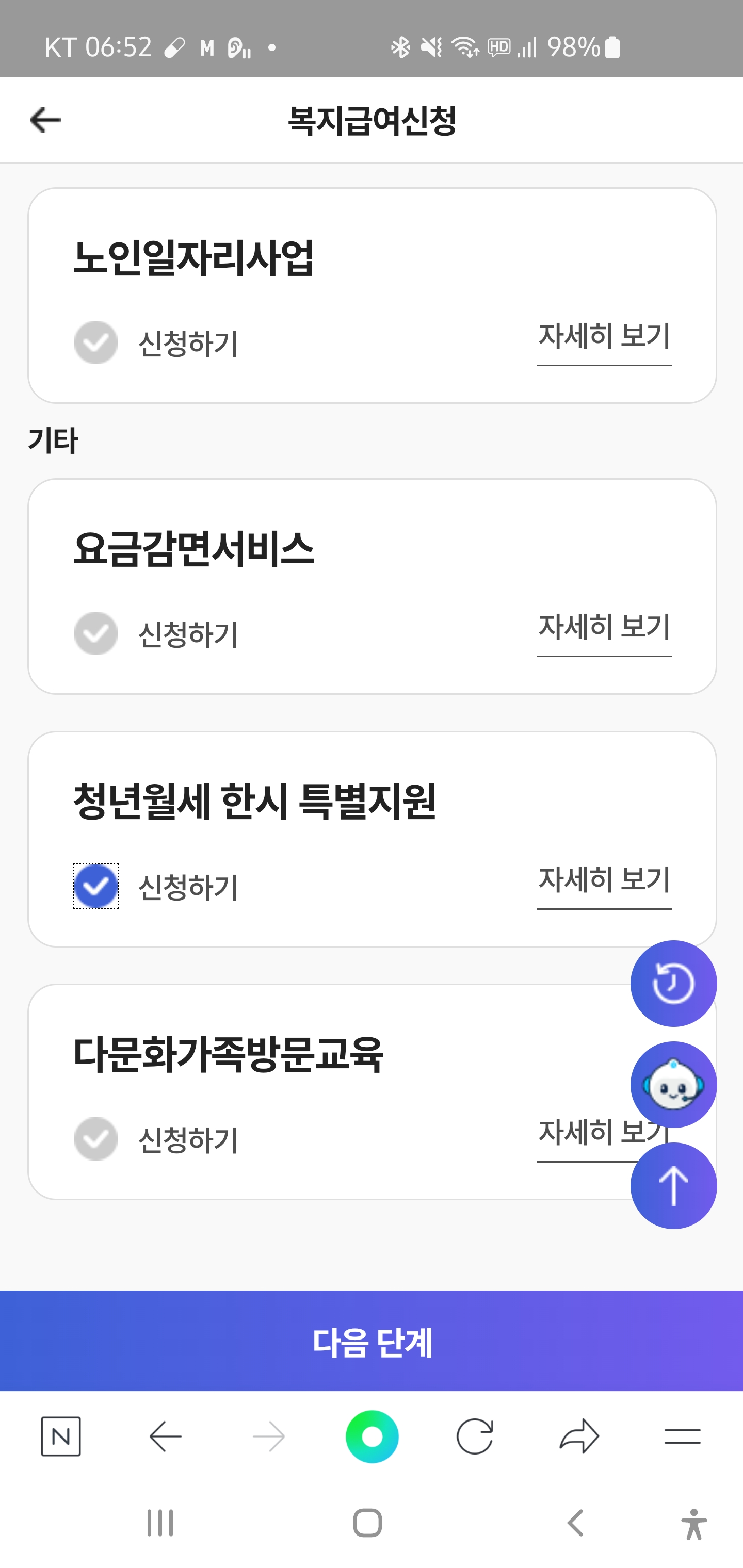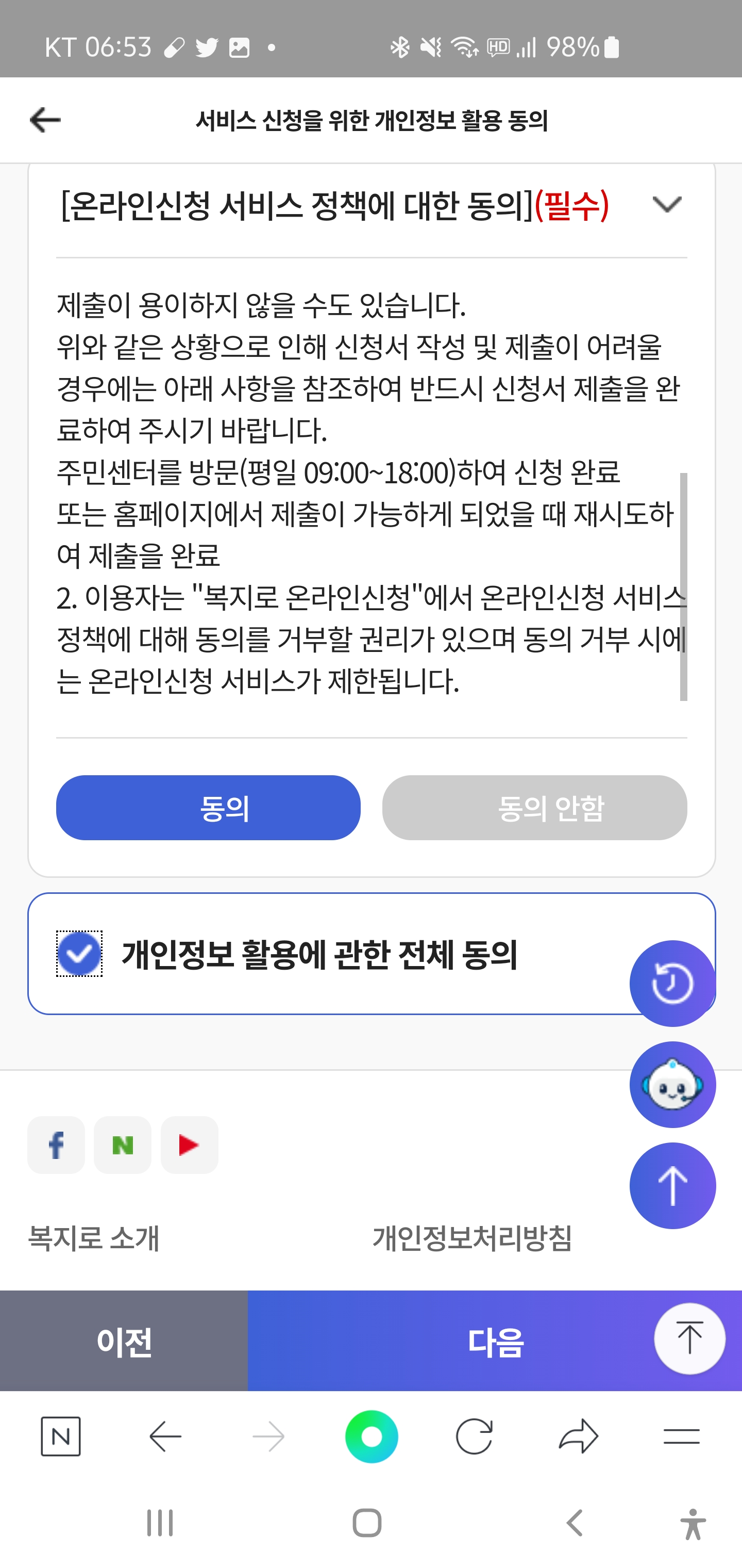 * 핸드폰으로 신청하면 사진과 같은 화면으로 진행이 됩니다.
