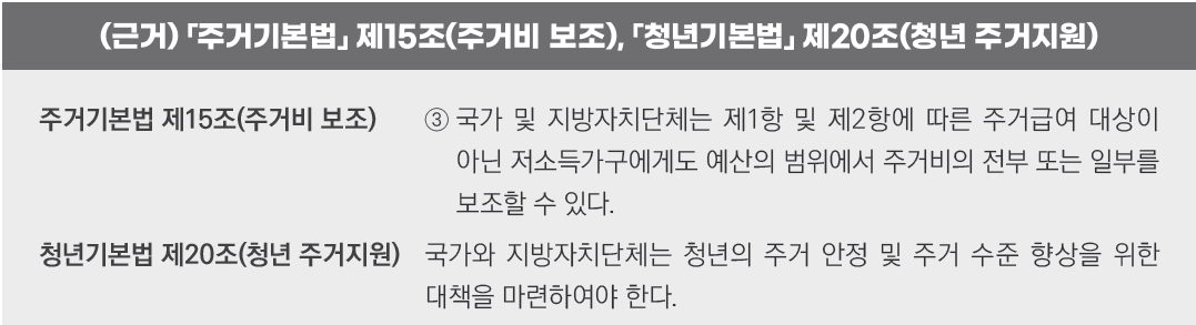 2) 이에 경제적 어려움을 겪고 있는 청년층의 거주비 부담 경감을 위해 청년월세를 한시적으로 지원 필요